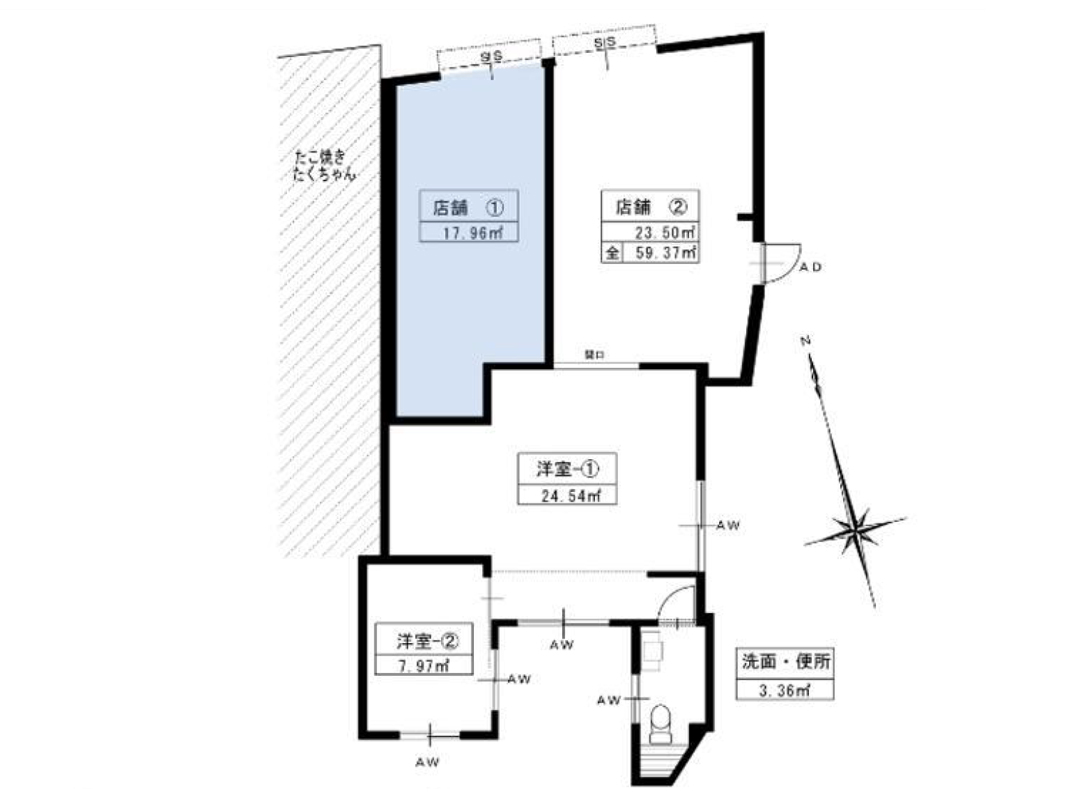 | 設備 | 都市ガス 電気 上水道 下水道 トイレ専用 飲食店 可 |